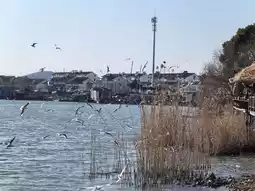 On the water-viewing platform in front of the temple, you can look at Yugang Village. Now there are many red-billed gulls. These elves on the sea often appear here. Order a cup of tea and watch the red-billed gulls quietly. The sunset is beautiful, and I really love the life here.