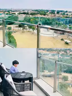 The room is spacious and comfortable, with a cozy and elegant decor. It has all the amenities you need, and it's super relaxing to stay in! I feel at ease when my baby jumps on the bed! 👶🛏