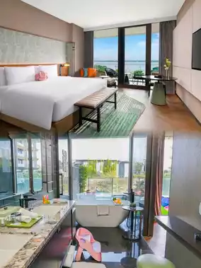 The hotel is located by Yangcheng Lake, offering a tranquil and elegant environment. Surrounded by lush greenery and picturesque lake views, the hotel's interior design is modern yet culturally rich, exuding sophistication and comfort in every corner.