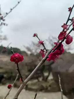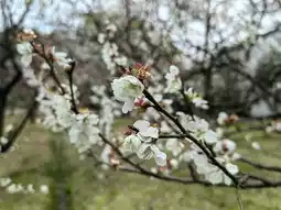 Stepping inside, I was captivated by the breathtaking scene. Records indicate that over 100,000 plum trees flourish here, boasting more than 30 varieties, including white, red, black, green calyx, and jade butterfly plums. The white plums resemble pure, flawless snow; the red plums evoke fiery passion; and the black plums exude a mysterious elegance. Strolling through the plum groves, the subtle fragrance fills the air, creating a sense of tranquility.