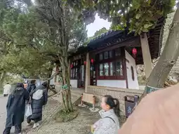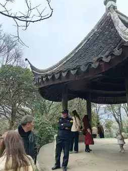 Ascending the steps within the scenic area, I came across Wenmei Hall, Plum Blossom Pavilion, and Wanghu Pavilion. I sat quietly in Wenmei Hall, closing my eyes as the gentle breeze carried the delicate scent of plum blossoms. The roof, windows, and floor of Plum Blossom Pavilion are all adorned with plum blossom motifs. From atop Wanghu Pavilion, the panoramic view of the plum groves blending seamlessly with the distant mountains and lake is truly stunning.