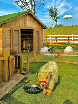 The farm is well-maintained, and home to alpacas, mini pigs, cows, miniature horses, Shaun the Sheep, Angora rabbits, and more.