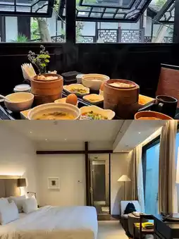 The hotel itself is a small, exquisite classical garden—Chang Garden. Every step within the garden reveals the gentle elegance of the Jiangnan water towns. Especially during the osmanthus blooming season, the entire courtyard is filled with a delicate fragrance, creating a sense of tranquility. Even on rainy days, sitting in the dining room and listening to the gentle patter of raindrops on the pond is a rare treat.