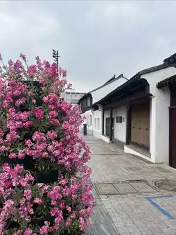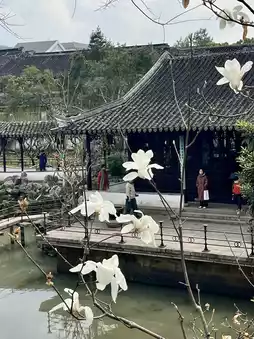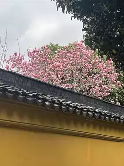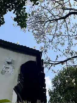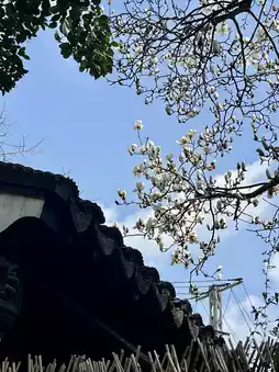 The morning was overcast, but the forecast promised sunshine in the afternoon, so I eagerly set out to admire the flowers. First, I went to Dinghui Temple. The purple magnolias were already in bloom, creating a beautiful picture against the yellow walls. My pursuit of magnolias led me to Shizi Street, but sadly, the white magnolias were already fading. Walking to Leqiao Bridge, I found purple violets blooming on both sides. Entering Yi Garden, I saw magnolia petals scattered all around. Strolling through Qu Garden, I spotted a few blossoms. In Dong Garden, a pear tree was in full bloom.