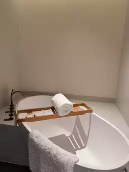 The room is spacious and bright, and there's a huge bathtub 🛁