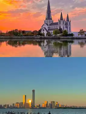 📌Jinji Lake: The night view is super beautiful, with a distant and close view of the Oriental Gate.