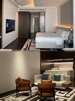 The suite is very spacious, divided into living and bedroom areas. There's a bathroom near the entrance, so two people checking in together don't have to worry about fighting over the bathroom 😂.