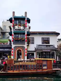 Pingjiang Road is a delightful place to walk, with its charming alleys and canals. The area is filled with various shops, ranging from food stalls and souvenir stores to shops selling antiques and even those dedicated to pets like dogs and cats. The narrow streets and crowds make it hard to walk quickly, but it's perfect for a leisurely stroll. The scenery along the canals is particularly captivating, with restaurants lining the bridges over the water and small boats passing by. Despite the number of tourists, the atmosphere doesn't feel overwhelming. Some shops are decorated with model figures or sculptures, crafted well enough to catch your attention. The area exudes the unique charm of the Jiangnan region, offering a blend of unfamiliar yet familiar sights. It's a neighborhood where you don't need to do anything specific—just walking around and taking in the surroundings is more than enough.