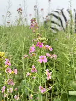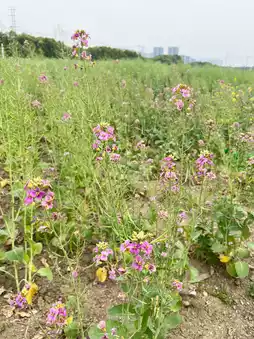 💐Most of the rapeseed flowers had already gone to seed, but upon closer inspection, we could still see the brilliant seven colors at the top of the rapeseed flowers, a mix of yellow, orange, purple, pink, and white. At least we got to see some color.