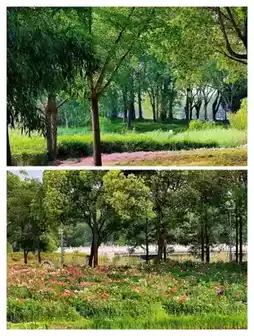 The moment you step into the park, it's like pressing the pause button on life! The vast grassland is like a soft green carpet, and the sunlight shines through the mottled shadows of the trees. Every shot you take is like a scene from a movie. In the clear blue sky, white clouds float slowly, and you can hear the crisp chirping of birds. Even the air is filled with the fragrance of flowers and plants. Sit by the lake and daydream, and your worries will instantly disappear!