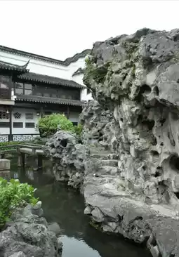• Water Features: The clear pond in Huanxiu Mountain Villa occupies one-third of the garden's area. The irregularly shaped pond complements the rockery perfectly. The pond banks are piled with Taihu stones to create mountain streams and steep cliffs, appearing naturally formed. Walking along the pond, you can enjoy the fish swimming in the water and the reflections of the rockery and pavilions, experiencing the gentle and vibrant beauty of Jiangnan water towns.