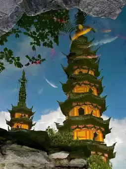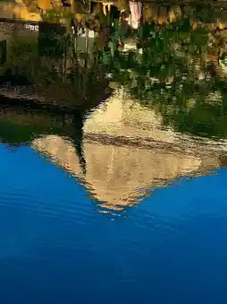 ✨Koi pond on the first floor reflecting the Twin Pagodas/Carved window frame on the second floor