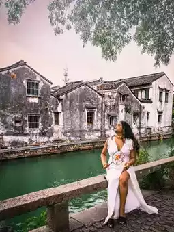 This striking historical backdrop is continually brought to life by the stream of visitors, many of whom add their own vibrant touch to the scenery. You'll frequently see people, often women, gracefully moving through the lanes dressed in stunning hanfu (traditional Chinese clothing) or elegant qipao. They pose artfully by the water's edge, on the ancient bridges, or against the characterful walls of the old buildings, meticulously capturing their moments. Their presence creates a living, breathing tableau, turning the already beautiful views into something even more captivating and memorable.