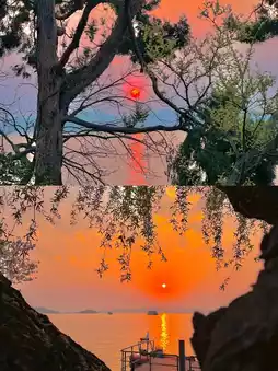 Xishan Island bleeds into indigo through the haze, while ripples knead sunset clouds into silk—scoop any handful, and it's Wang Wei's verse: "The round sun sinks along the endless river."