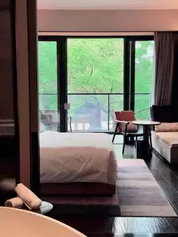 The hotel features 178 guest rooms and suites, with 90% offering private balconies or courtyards, starting from 48㎡. Rooms are equipped with SONY TVs, GENEVA sound systems, and capsule coffee machines. The minibar's first round is complimentary, and amenities are from Dutch brand Atelier Bloem.