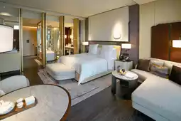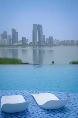The hotel's swimming pools are exceptionally designed. Suzhou Four Seasons offers both indoor and outdoor pools. The indoor pool is surrounded by lush greenery, with sunlight streaming in, bathing guests in a relaxing green oasis. The outdoor infinity pool provides even better views, directly facing Suzhou's landmark, the Gate of the Orient. There's also a children's pool and a water slide🛝 for fun.