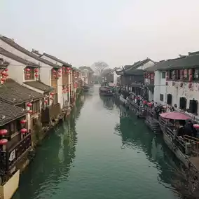 Shantang Street in Suzhou is a charming ancient street and a 5A-level tourist attraction with a history of over 1,200 years. With old buildings along the canal, many shops, restaurants and souvenir shops. There is also a Chinese costume rental service to walk around.