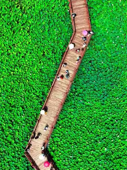 - Hetang Yue Se Wetland Park: Here you will find thousands of acres of lotus ponds, with the summer fragrance of lotus flowers filling the air. The beautiful scenery of "lotus leaves connecting to the sky" is enchanting. Stroll along the wooden boardwalk, wandering through the lotus flowers, with a gentle breeze cooling you down. You can also choose to take a boat ride to get closer to the lotus flowers and connect intimately with nature.