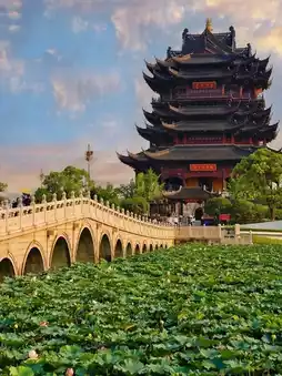 Surrounded by water, gardens, and lotus ponds, the temple exudes calm and grandeur. Ornate halls, incense-filled courtyards, and bridges over still waters make Chongyuan a peaceful spiritual retreat just outside the urban rhythm of Suzhou.