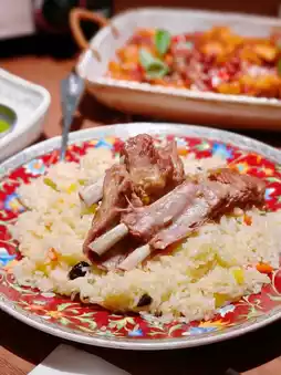 新疆羊排手抓饭 (hand-pulled lamb rice):