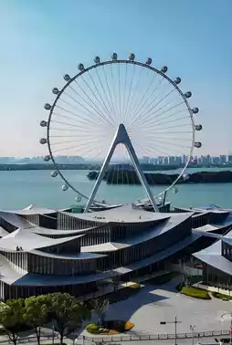 1⃣ Facilities: Standing 128 meters tall as "Asia's largest water Ferris wheel," it features space capsule designs offering 360-degree panoramic views of Jinji Lake. Equipped with 28 panoramic glass-walled capsules (25 people per capsule, ~28 minutes per rotation), each maintains a constant 26°C temperature. Six themed capsules (e.g., conference room, bar, couples' cabin) cater to business and social needs. The base features an LED light system synchronized with Jinji Lake's musical fountain.