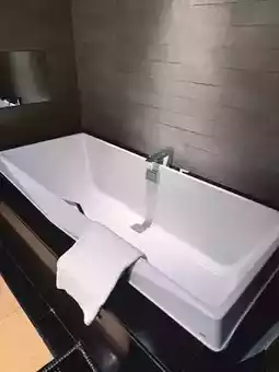 A TOTO triangular bathtub 🛁! Stylish and perfect for a relaxing soak.
