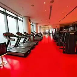 The hotel is filled with contemporary art and colours which feels super modern. A proper gym with loud red flooring lol.