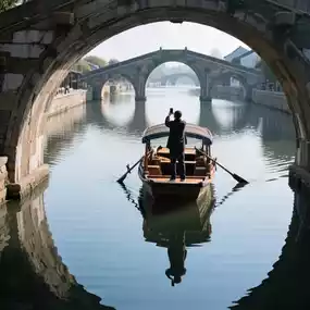 - Hidden Angle: At the bend of the “Chuanxin Alley” waterway, shoot a low-angle photo with your phone capturing the “bridge arch framing the boat” scene. The reflection of the bluestone path and the boat form a symmetrical composition; adding a “soft light” filter in post enhances the Jiangnan hazy atmosphere.