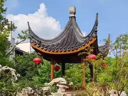 Central Pool Garden: Huge pool with pavilions and towers, lotus flowers, rockeries, and red lanterns. Walking around in a qipao, people ask, "Are you at the Humble Administrator’s Garden?"