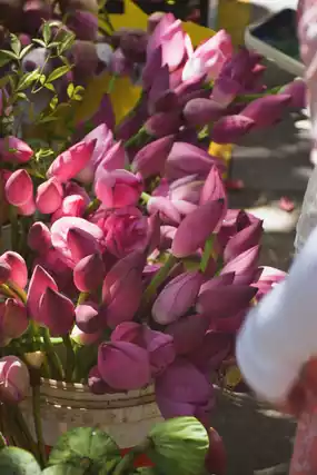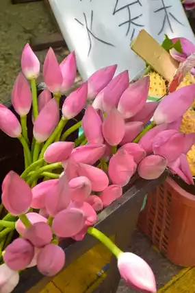 • Lotus: 10 yuan/5 stems (mostly in bud, wrapped in lotus leaves to prevent damage).