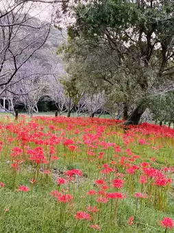[Sakura] Stepping into the garden feels like entering a palette spilled by nature. The red spider lilies spread their intense crimson in the night, each flower like a burning flame, exuding a mysterious and strong atmosphere.