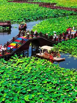 At Suzhou Hetang Yuesese, the hundred-acre sunflower field is blooming with autumn-exclusive romance! The autumn sunlight pours down, the golden sea of flowers waves like rolling waves, the tall flower stems point straight to the clear sky like swords, and the air is filled with a sweet fragrance. Here, every snap is a stunning masterpiece, embodying the beauty of sunflowers from Van Gogh's famous works. Meanwhile, at the junction of Lizhong Town and Zhoufen Township in Xinghua City, Jiangsu Province, the ten-thousand-acre Lotus Pond Scenic Area, themed around "lotus culture," has planned over 2,000 acres in its first phase and introduced more than a hundred varieties of lotus flowers. A sea of green stretches out, shy lotus flowers emerge from the water, lotus leaves resemble a maiden's skirt, and the gentle breeze feels like a grand ball. Come check it out and experience this unique romance and freshness!