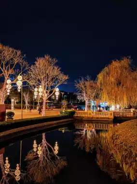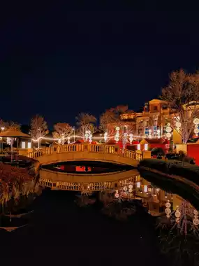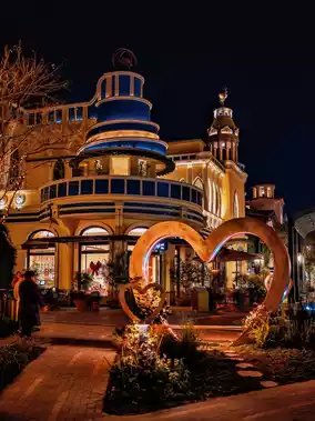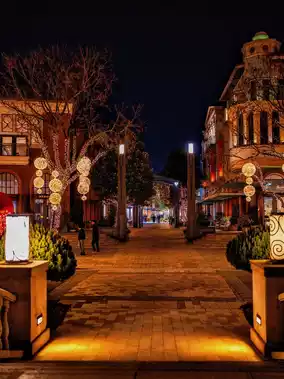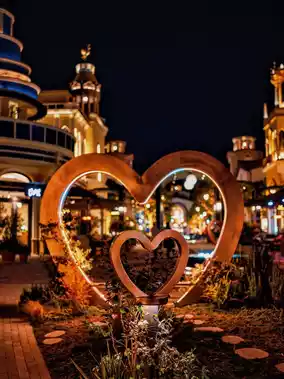 During the day, it feels like stepping into a European fairy tale town 💒 with sunlight shining on the buildings, as beautiful as a postcard! At night, the lights turn on and it’s incredibly romantic 💥 especially the heart-shaped sculpture, a perfect photo spot for couples! 👩❤️👨