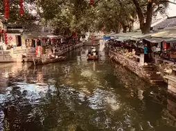 The view is consistently picturesque, featuring well-preserved Ming and Qing dynasty architecture with white walls and dark tiles built right along the water's edge. Taking a ride in a traditional awning boat (摇橹船) is a must, offering a serene, intimate view of the houses and carved windows from the water level.