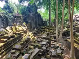 Beng Mealea truly feels like stepping into the world of 'Laputa.' The collapsed corridors, moss-covered stone steps, and entwined trees create a landscape that stirs the spirit of adventure. Allocate at least an hour for your visit.