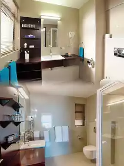 The bathroom is clean and tidy, with complete shower facilities, allowing guests to enjoy a relaxing time during their tiring journey. It is worth mentioning that some rooms have a private balcony, allowing guests to enjoy the breathtaking sea view from the room.