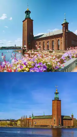 🏛️ Stockholm City Hall – This red-brick building on Lake Mälaren is notable for its tall tower and the Blue Hall, which hosts the annual Nobel Prize banquet. The view from the tower is one of the most beautiful in the city.