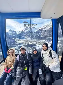 Oeschinensee was another unforgettable stop on our journey. This pristine lake is tucked away in the mountains, and we took a cable car ride up to witness its stunning beauty. The frozen lake, snow-covered trees, and the dramatic mountains in the background made for some incredible family photos.