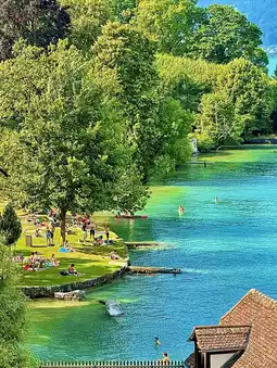 But we'd like to take it easy a little bit. Choose to take a boat ride on Lake Thun and Lake Brienz, the water is crystal clear, as clear as emeralds. 🚤✨