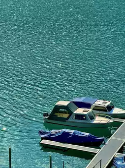 The crystal clear blue water, the view of the snow-capped mountains in the distance, with white boats floating on the water's surface. It is the ultimate in romance. ⛵❄️💙