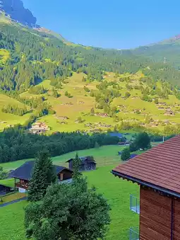 Walking along the grass, listening to the sound of waterfalls, cowbells, and birds chirping