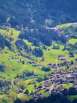 Lauterbrunnen is a village surrounded by high cliffs and more than 70 waterfalls. 💦 The highlight is Staubbach Falls, a tall waterfall flowing down from a high cliff. It's a beautiful picture like it came out of a Disney cartoon. 🏞️🌸