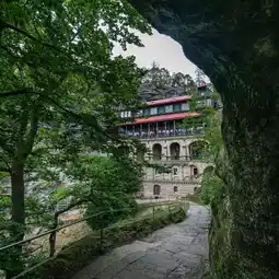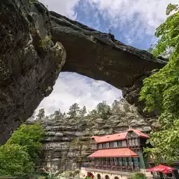 Once you arrive, the historic Sokolí Hnízdo inn built in the nineteenth century adds a charming human touch to the dramatic setting. The views from the area are sweeping, with cliffs, valleys, and forest stretching into the horizon. It is a perfect blend of natural wonder and cultural history, making the visit more than just a walk in the park. Pravčická Brána and Sokolí Hnízdo together create an experience that feels both grand and intimate.
