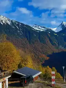 The bright red cable car contrasts beautifully with the snowy white mountains and golden forests, creating a view so stunning it takes your breath away 🥹. As you slowly ascend from the village below, you’ll see the Lauterbrunnen Valley stretching out in front of you, with the majestic peaks of Eiger, Mönch, and Jungfrau standing proudly in the distance. It’s just a few minutes, but it feels like stepping into a postcard 💌.