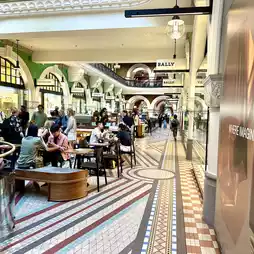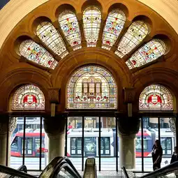 Sydney's QVB (Queen Victoria Building) is a historic shopping centre featuring gorgeous 19th-century architecture. Built in 1898, the building captivates visitors with its magnificent Romanesque design, beautiful stained glass and domed ceilings. Located in the city center, it is visited by many people as a base for shopping and sightseeing 👫