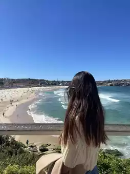 Walking along the Coogee Trail along the beach, it is super therapeutic to look out over the entire beach. It is vast, the coast is beautiful, and the sky is blue. P1 is the perspective taken from the coastal trail looking down.