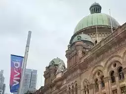 The Queen Victoria Building (QVB) is located on George Street in the heart of Sydney. This Romanesque Revival-style building is renowned for its 33-meter-high glass dome, stained glass windows, and spiral marble staircase. It was hailed by fashion icon Pierre Cardin as "the most beautiful shopping mall in the world." The "Royal Clock" on the south side performs a mechanical puppet show every hour, while the "Australia Clock" on the north side chimes every half hour. Its dials feature miniature scenes from Australian history.
