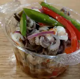 I suggest you go into the fish market and walk to the innermost part near the fruit and vegetable market. The seafood there is cheap and delicious. A big bowl of small octopus salad is about $10 Australian dollars. It is full of octopus🐙 and you can eat it chewy😋💯
