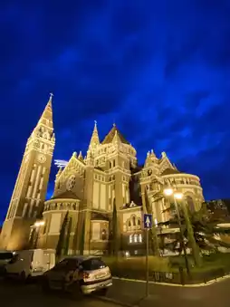 : : : : : : : : : : : : : : : Construction of the church began in 1913, but due to the outbreak of World War I, it was not completed until 1930. The church is also the cathedral of the Roman Catholic Diocese of Szeged–Chonard. The Votive Church in Szeged is the fourth largest church in Hungary.