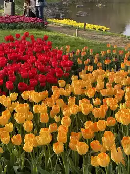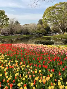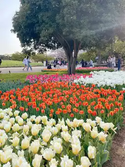 I've always wanted to go to the Tulip Garden at Showa Memorial Park, which is held at this time every year, and this was my first time there. It was beyond my imagination and truly beautiful. The ginkgo trees that line the streets in the fall are also beautiful, but this was even more moving. I was able to see the collaboration of cherry blossoms and tulips🌸 Admission fee: 450 yen for adultsOpening hours: Saturdays and Sundays: 9:30-18:00 Weekdays: 9:30-17:30📍Showa Memorial Park Keiryu Hiroba (JR Tachikawa Station)💐250,000 tulip bulbs of 202 varieties, 98,000 muscari bulbs of 4 varietiesBest time to see: Early to mid-AprilIf you rent a bicycle right after entering the entrance, you can see a wide area without having to walk a long distance🚲There are also two-seater bicycles, so it's fun☺️The Bouquet Garden will be held from mid- to late May🌿On the way back, I left Showa Memorial Park and went to the nearby Green Springs. All the restaurants were very crowded. Take this opportunity to visit Tachikawa 🫶🏻